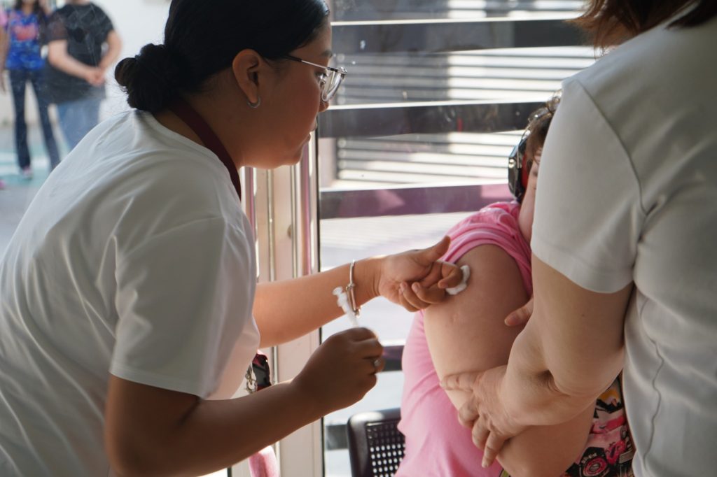 NUEVO LAREDO.- Fortalecer la protección de la salud de la niñez, el Sistema para el Desarrollo Integral de la Familia (DIF) Nuevo Laredo llevó a cabo una jornada de vacunación en el Centro de Autismo, donde personal médico del Instituto de Seguridad y Servicios Sociales de los Trabajadores del Estado (ISSSTE) aplicó diversas vacunas a niñas y niños usuarios de este espacio.